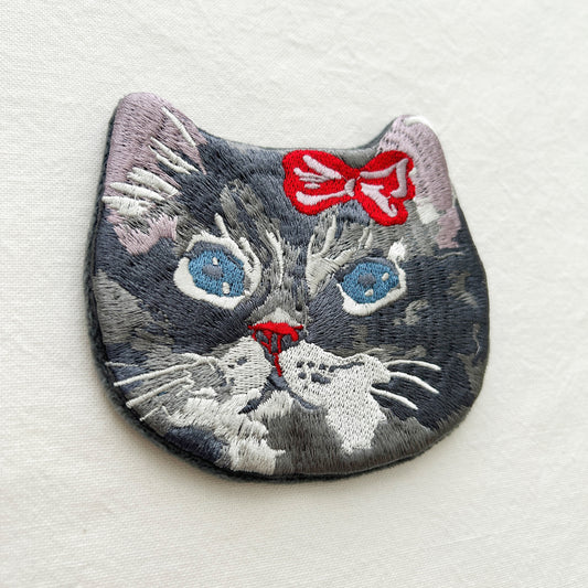Nathalie Lété Embroidered Animal Face Pouch - Grey Cat