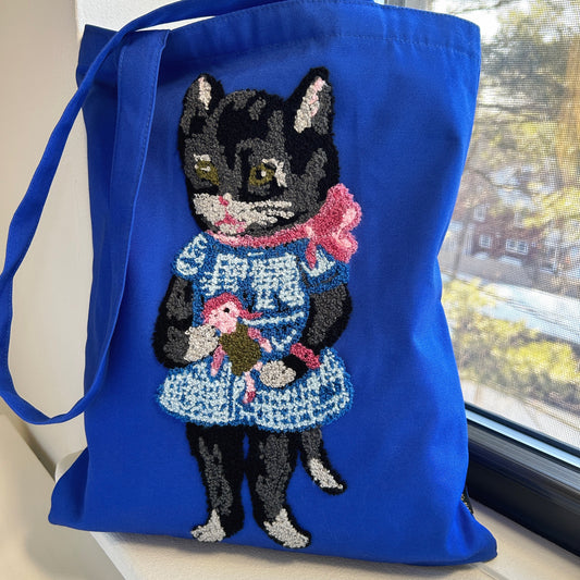 Nathalie Lété Embroidered Tote Bag - Black Cat Blue Bag