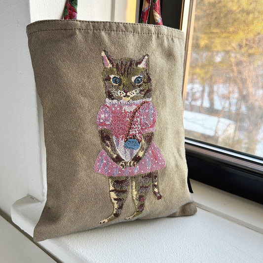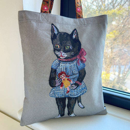 Nathalie Lété Embroidered Tote Bag - Black Cat Grey Bag