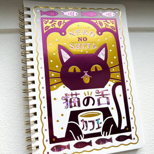 Rokkaku x OB1 B6 Foil Stamped Spiral Notebook Cat's Tongue Café
