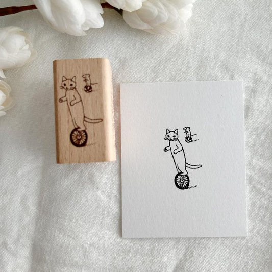Pottering Cat Rubber Stamp - Unicycle