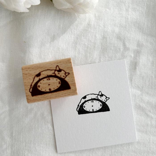 Pottering Cat Rubber Stamp - Clock