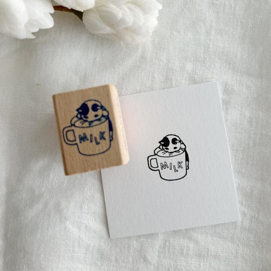 Pottering Cat Rubber Stamp - Milk