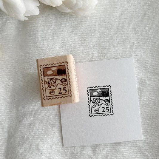 Pottering Cat Rubber Stamp - Postage Stamp