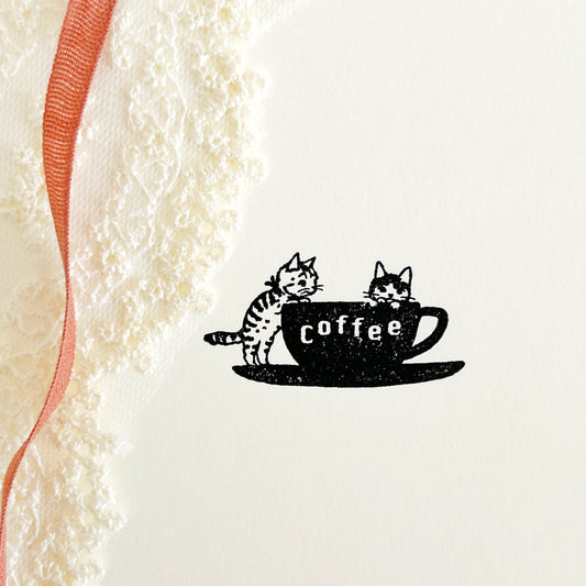Pottering Cat Rubber Stamp - Coffee Cup