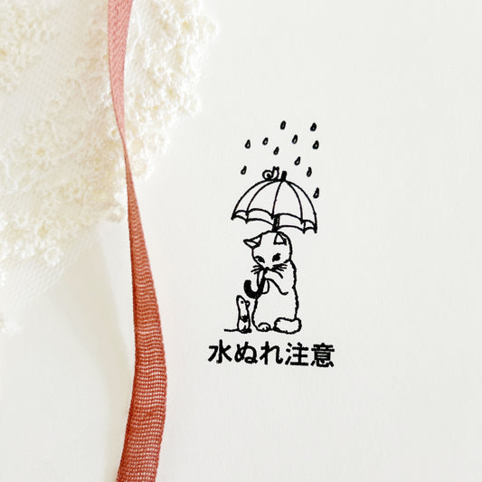 Pottering Cat Rubber Stamp - Rainy Day