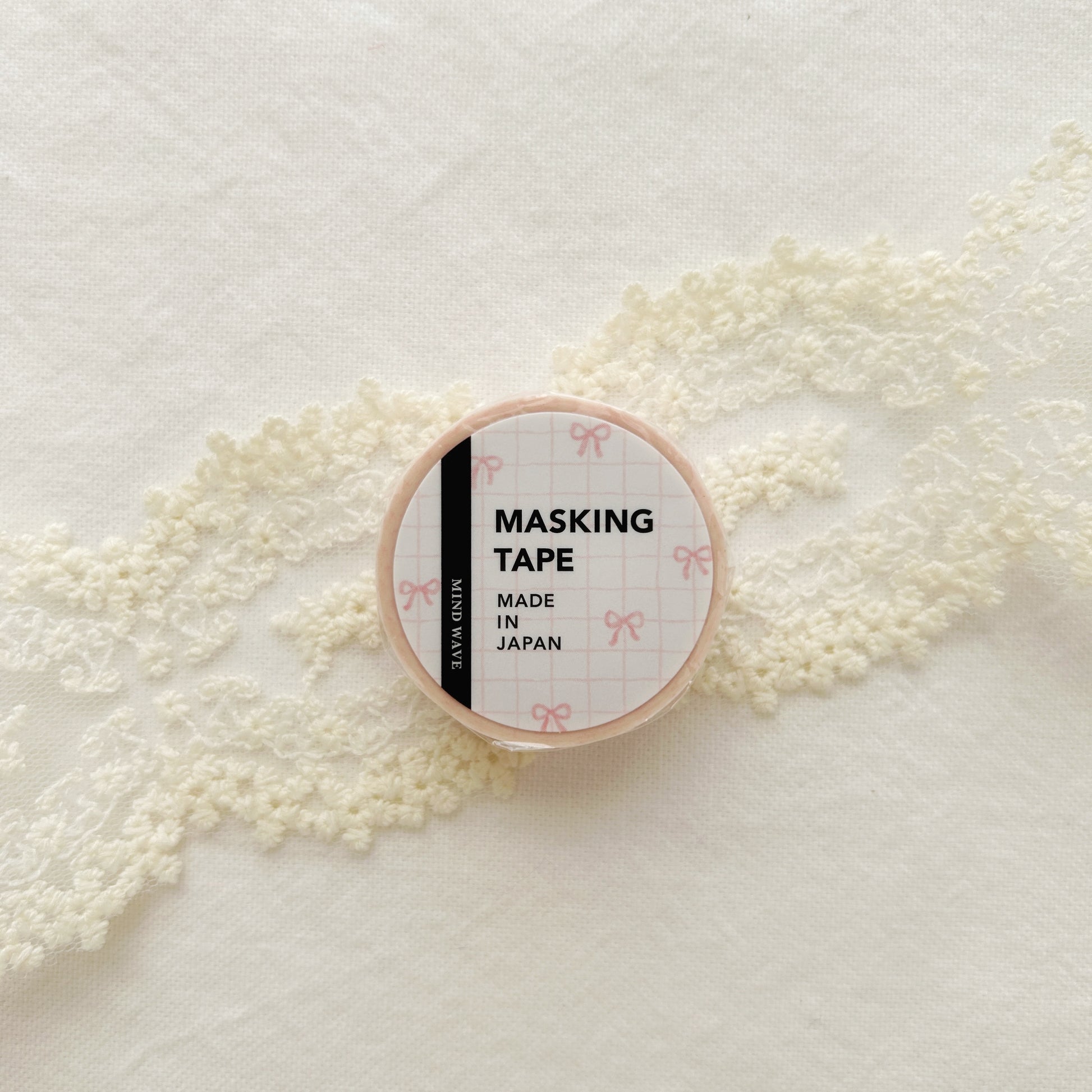 This washi tape series features whimsical pink checkered pattern with illustrations of pink bow details. Perfect for decorating your journal, scrapbook, craft project, and more.